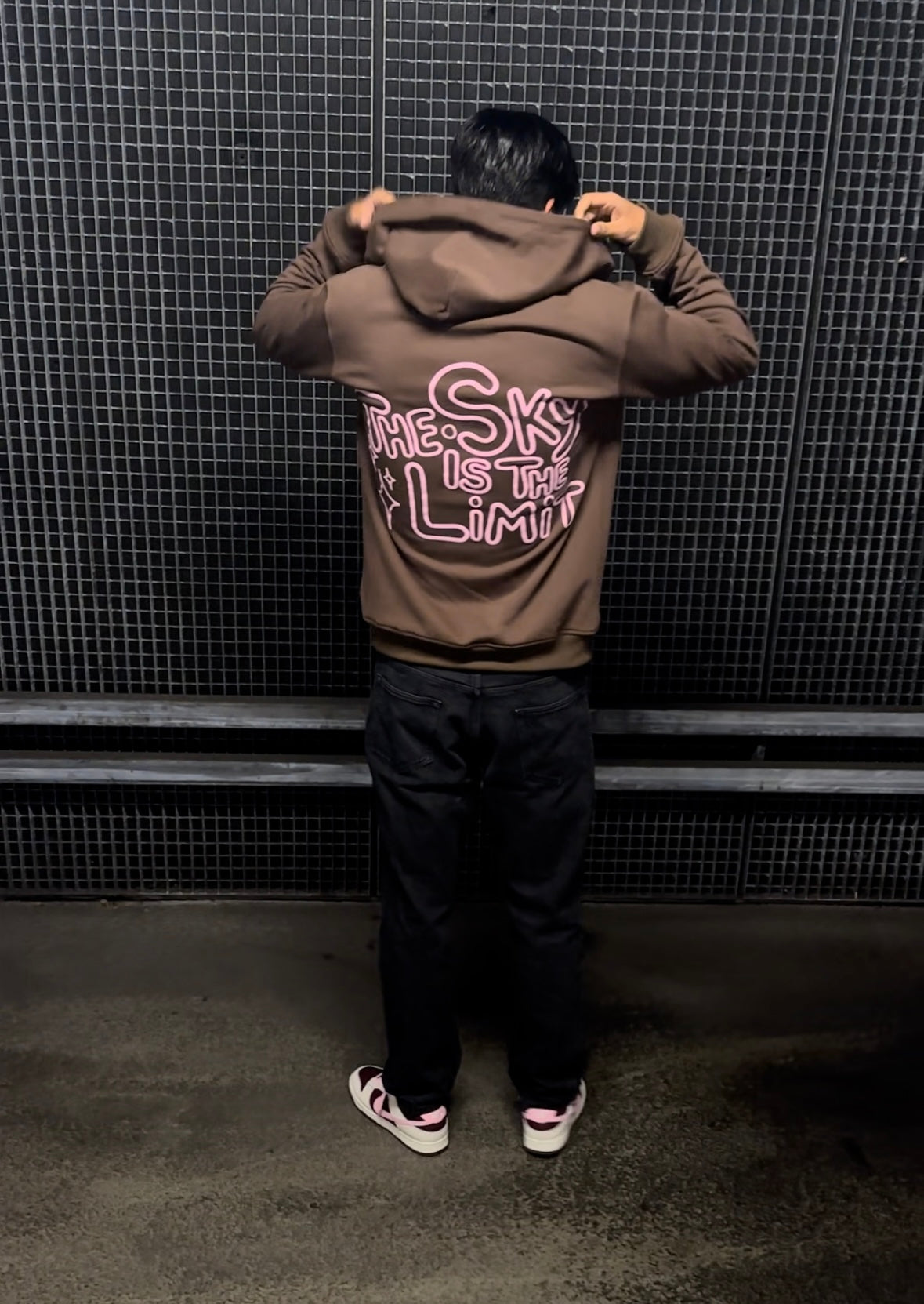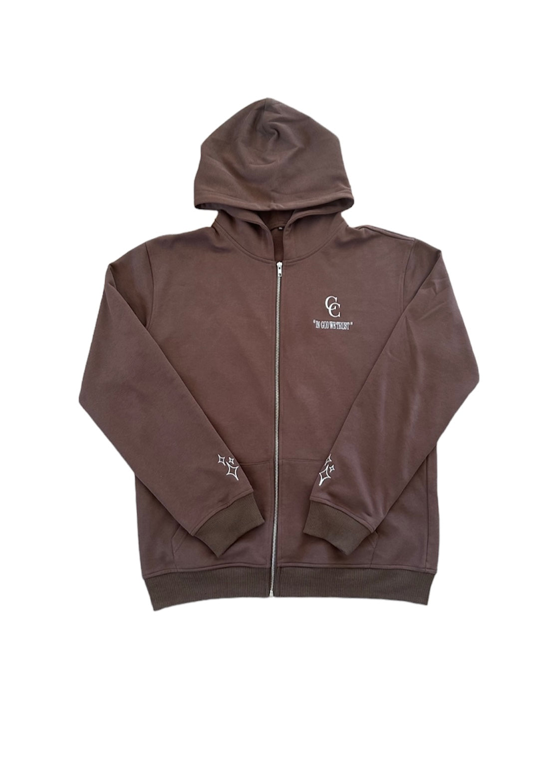 Zip Hoodie with embroidered logo patchwork on front chest and sleeves. With puff print on the back.